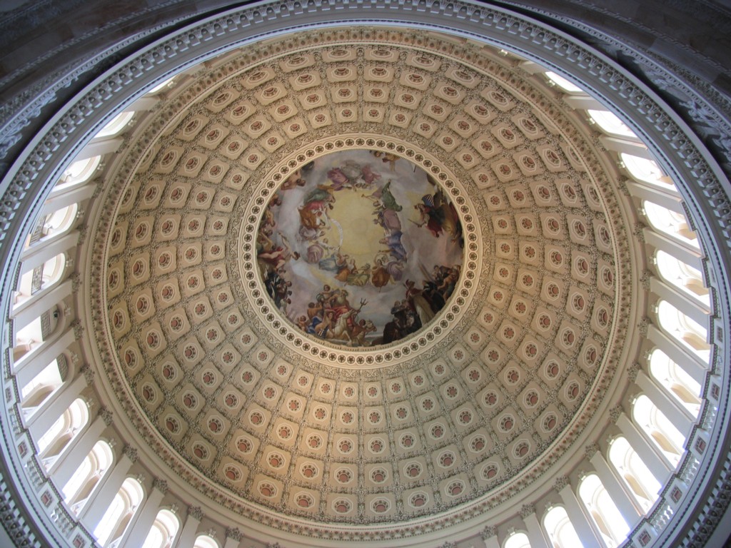 The Rotunda of the Capital Building. This is a huge 96 foot wide circular hall, capped by a 180 foot dome. Nine presidents have lain in state here.