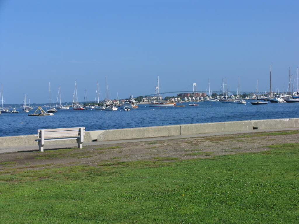 We headed down to Newport, RI and, just as we got on the (Claiborn) Pell Bridge, heading into Newport, we spotted hundreds of locals out on the beach, on both sides of the bridge, at 8:15 in the morning. They were wading and swimming in the (cold) water and sunning themselves on the beach. Made me laugh out loud! At least we westerners have the good sense to wait until the sun comes up!